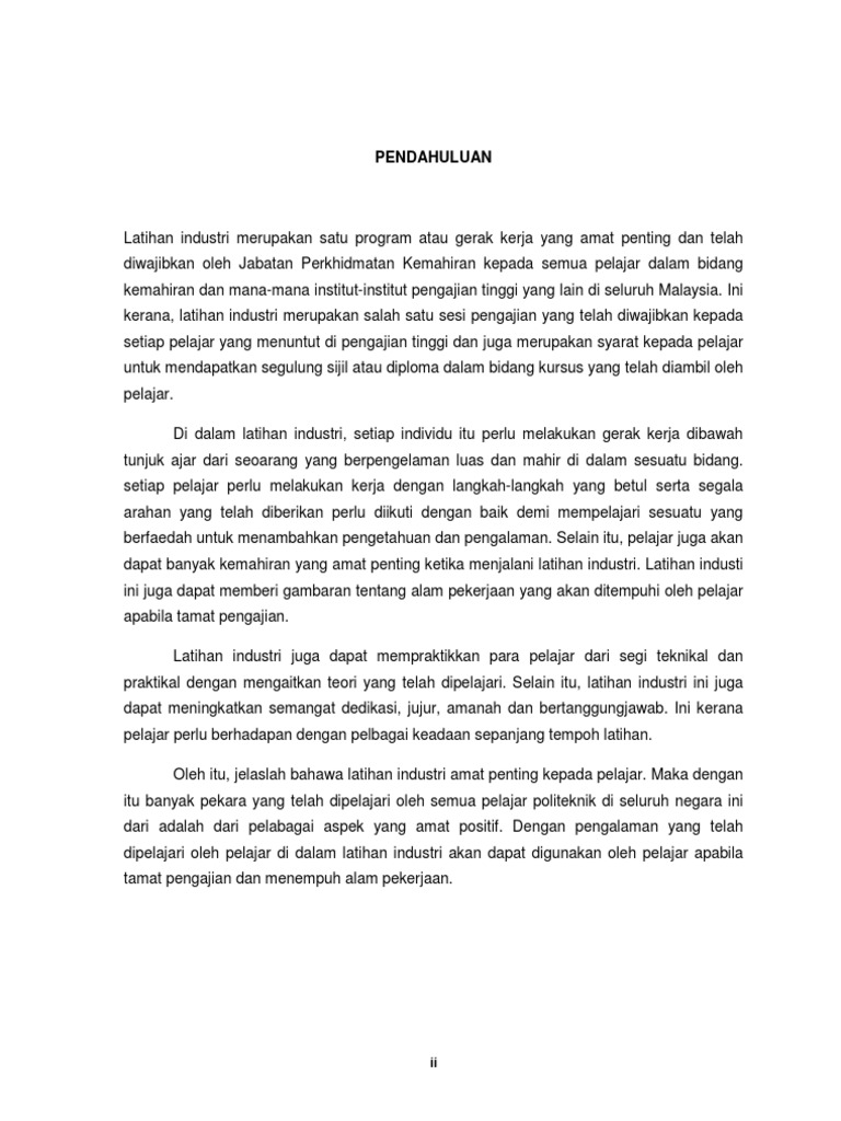Contoh Draf Laporan Latihan Industri